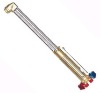 Cutting torch Murex Cutting torch NM250 Cutting torch 1. Feature: a. Heavy duty cutting up to 300 mm steel b. Stainless steel is used in gas tubes for greater heat resistance and thus resistance to backfire d. Top stainless steel lever w/hold down button. e. Die forged brass head for added strength and durability. 2. Application: Cutting, heating, rivet cutting and washing, gouging. 3. Packing: Color box and with foam 4. Specification: MODEL CUTTING CAPACITY (MM) LENGTH (MM) NET WEIGHT (Gram) NOZZLE JCT-01A 1-300 490 1200 PNM, PNME, ANM, ANME